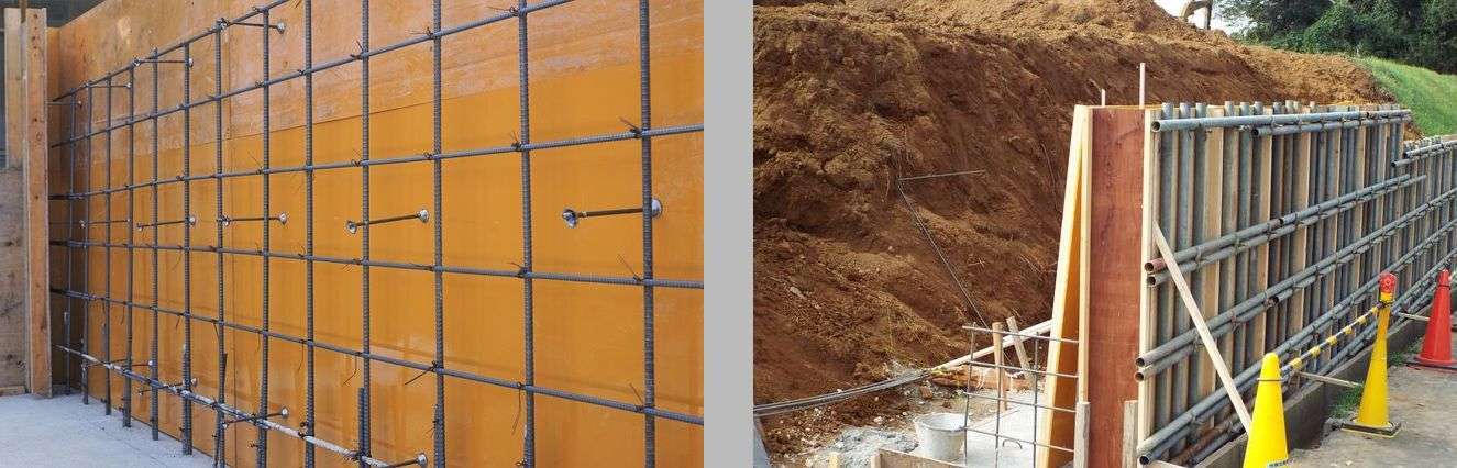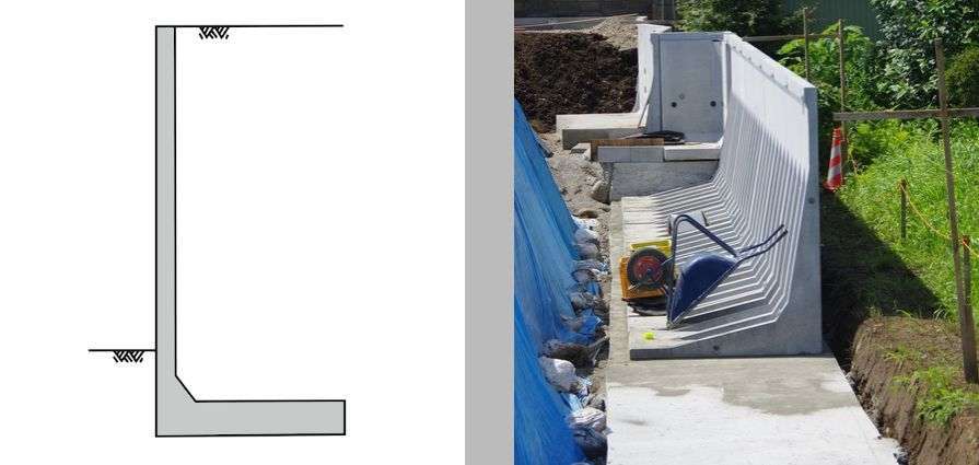 高い擁壁を作る際、L型やT型の壁が土圧で折れないように控え壁で壁と底盤をつないだものです。