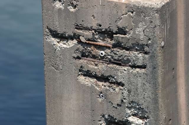 ※爆裂現象・・・鉄筋コンクリート構造物で、内部の鉄筋が錆びて膨張し外側のコンクリートが押し出されて、剥離・剥落する現象です。
