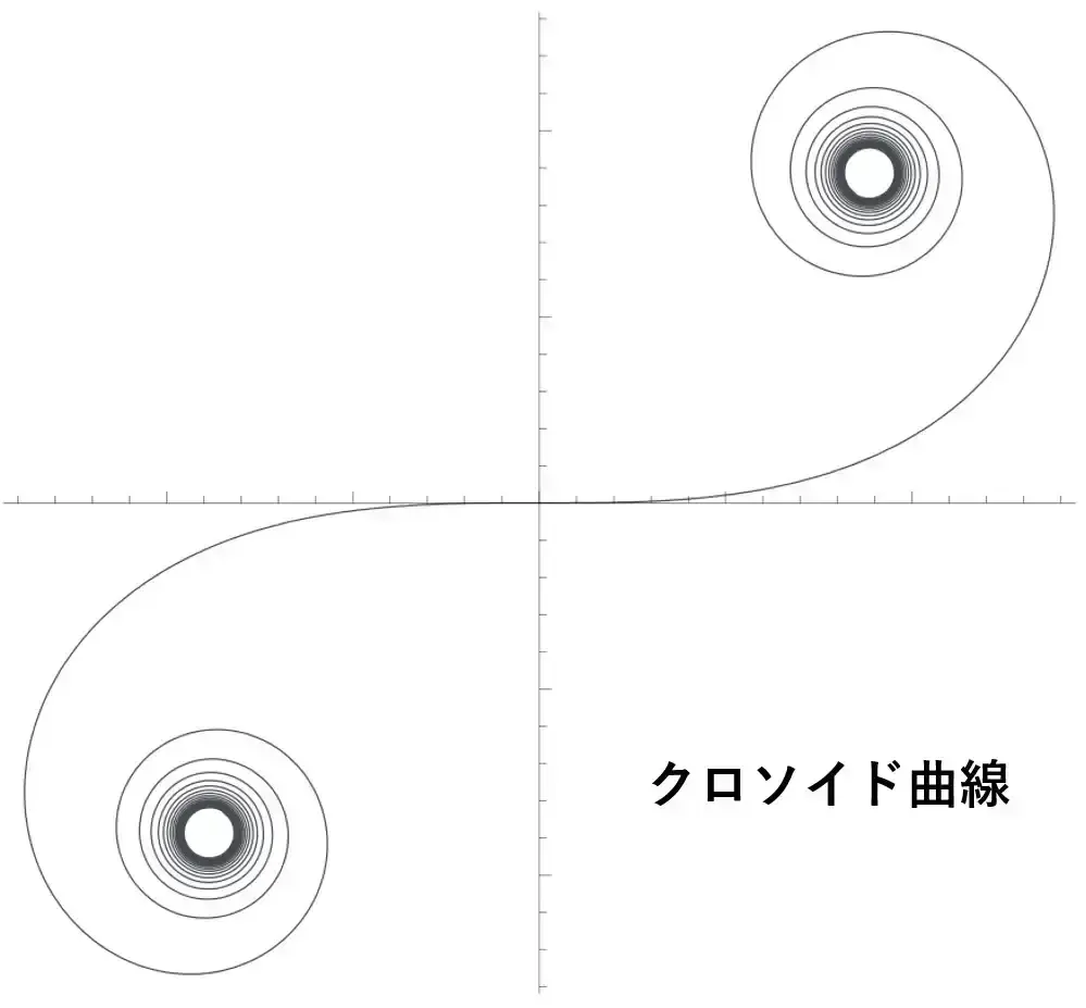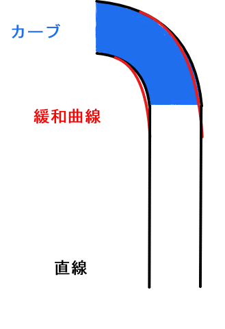 安全と運転者の負担軽減の為、上図の赤い線のように曲線半径を徐々に変化させていきます。