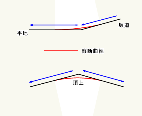 摺り付け部分を縦断曲線とかバーチカルカーブと言います。