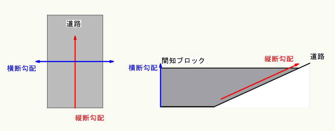 勾配にも色々とあり、大きく分類すれば、縦断勾配と横断勾配があります。