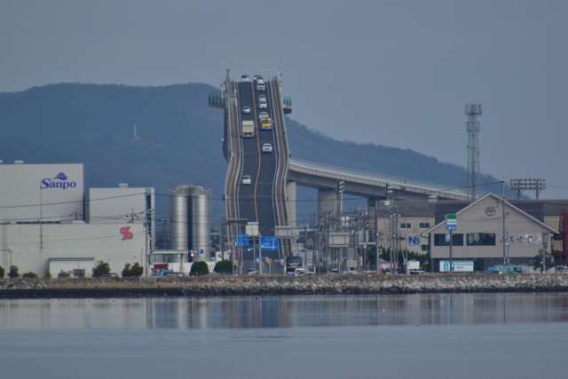 上の写真は一時期よく見かけた島根県のベタ踏み坂こと、江島大橋。
