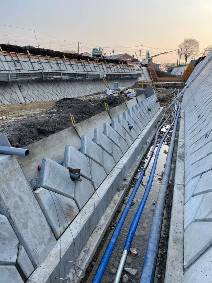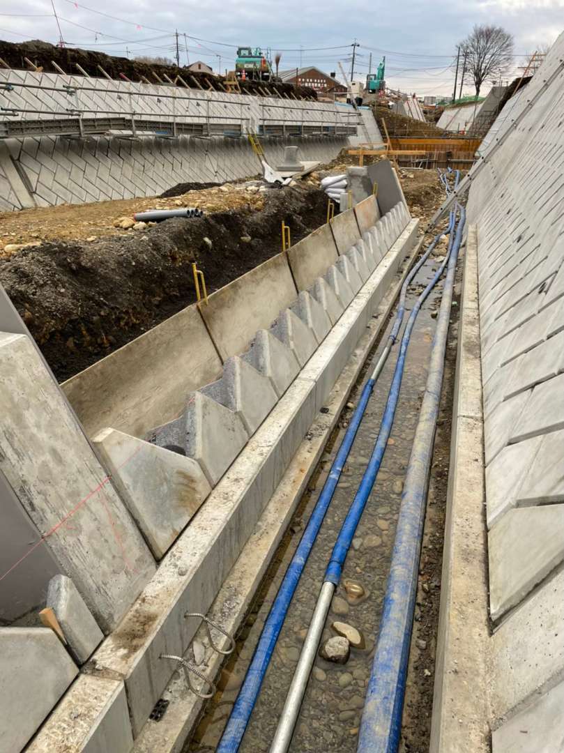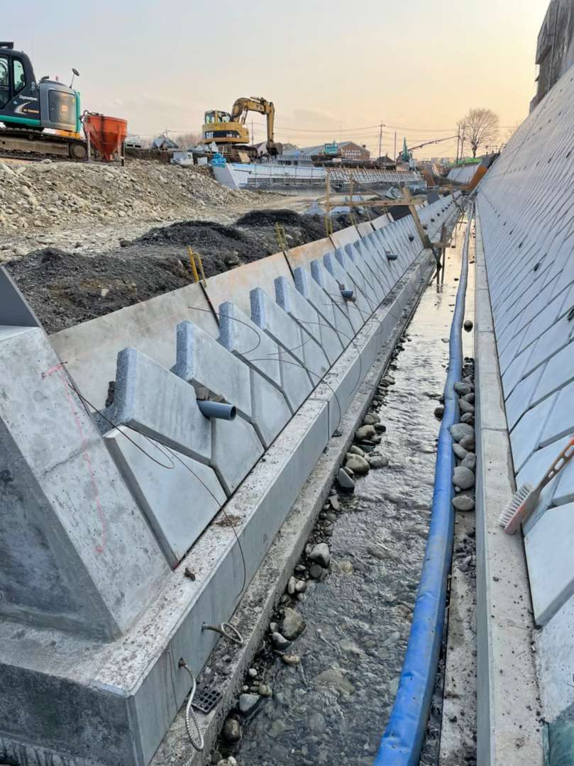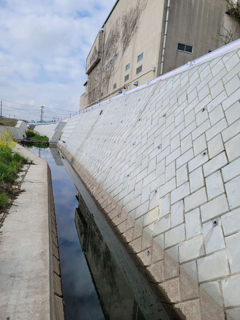 埼玉県所沢市の調節池の工事で大型張ブロックを施工した現場です。 1割の張りで施工しました。 ここの調節池では全部で4工区施工しました。 調…