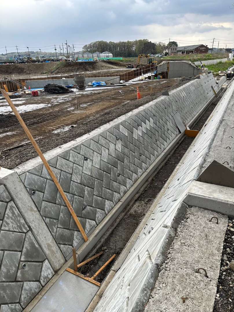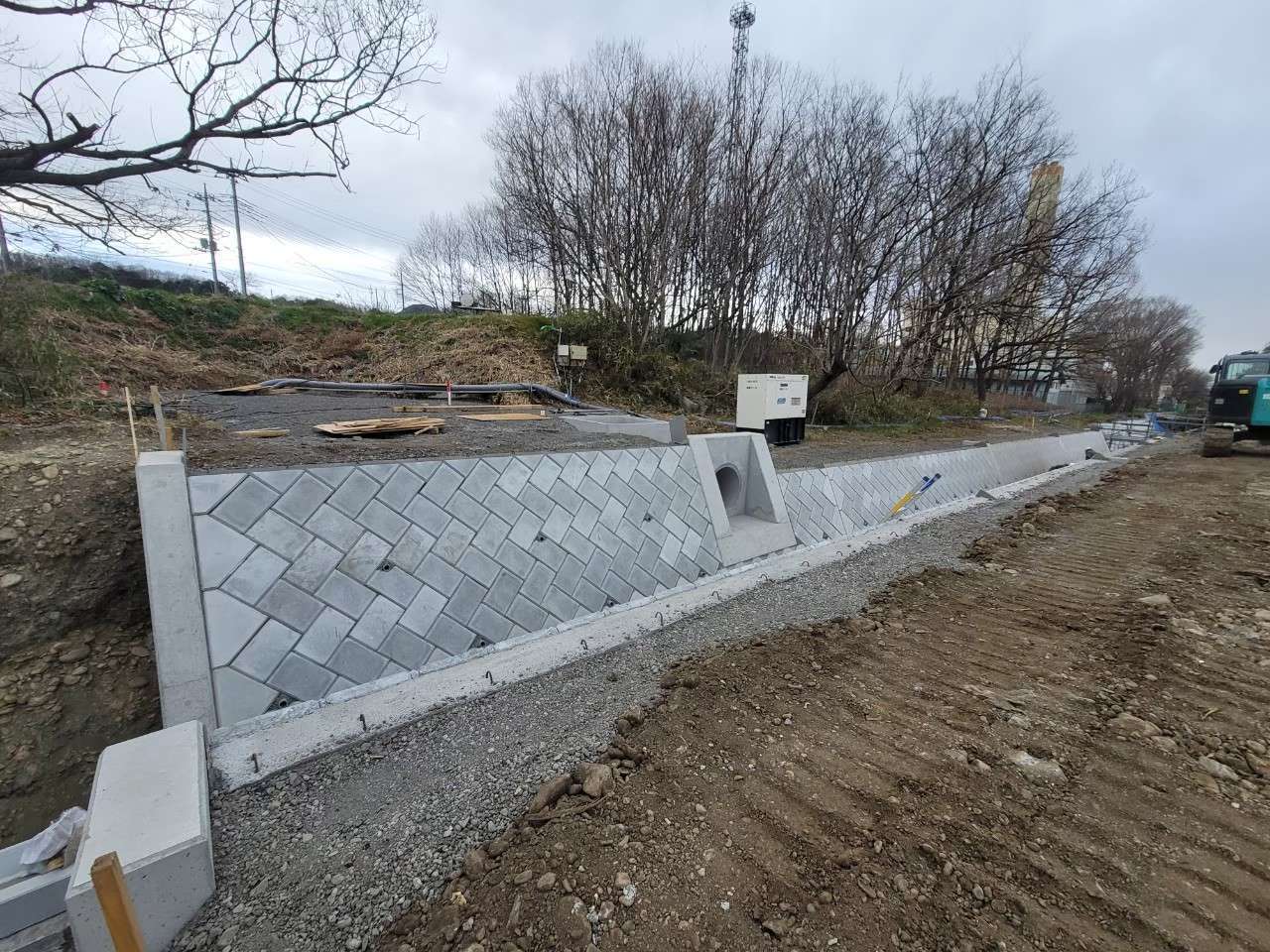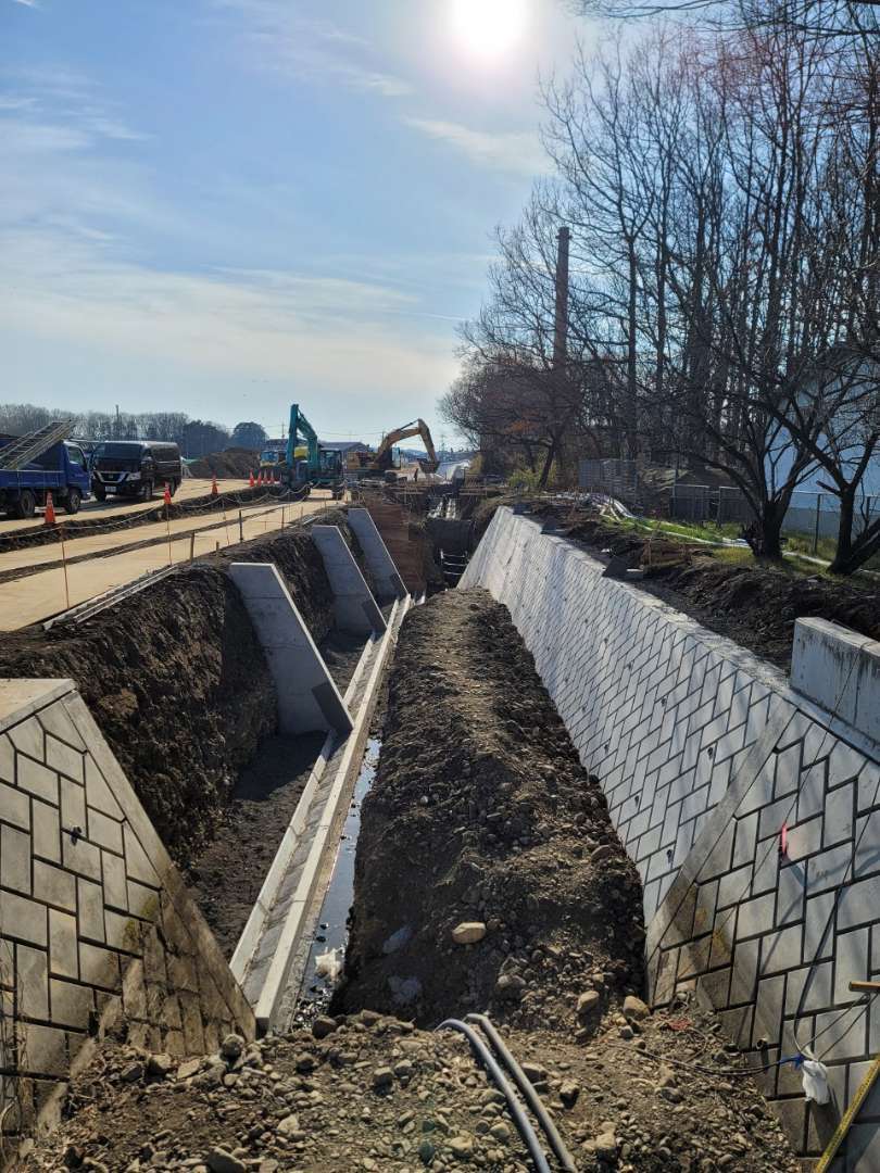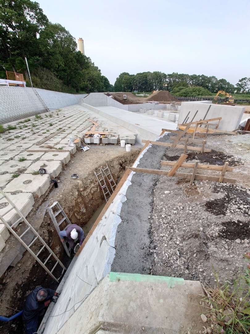 埼玉県所沢市の調節池の工事で大型張ブロックを施工した現場です。 1割の張りで施工しました。 ここの調節池では全部で4工区施工しました。 調…