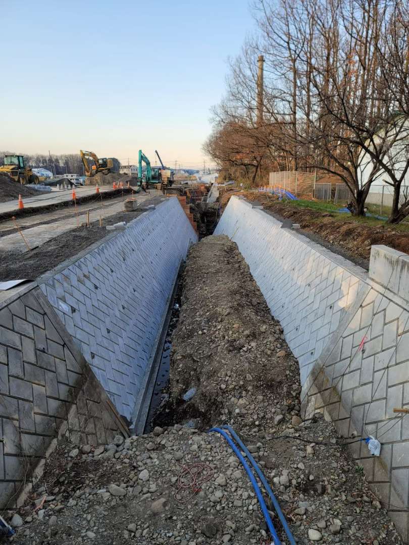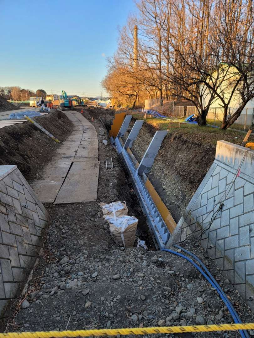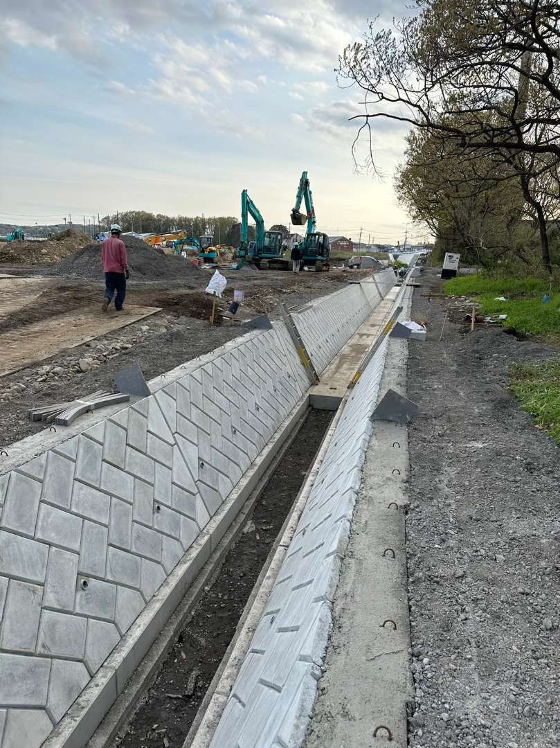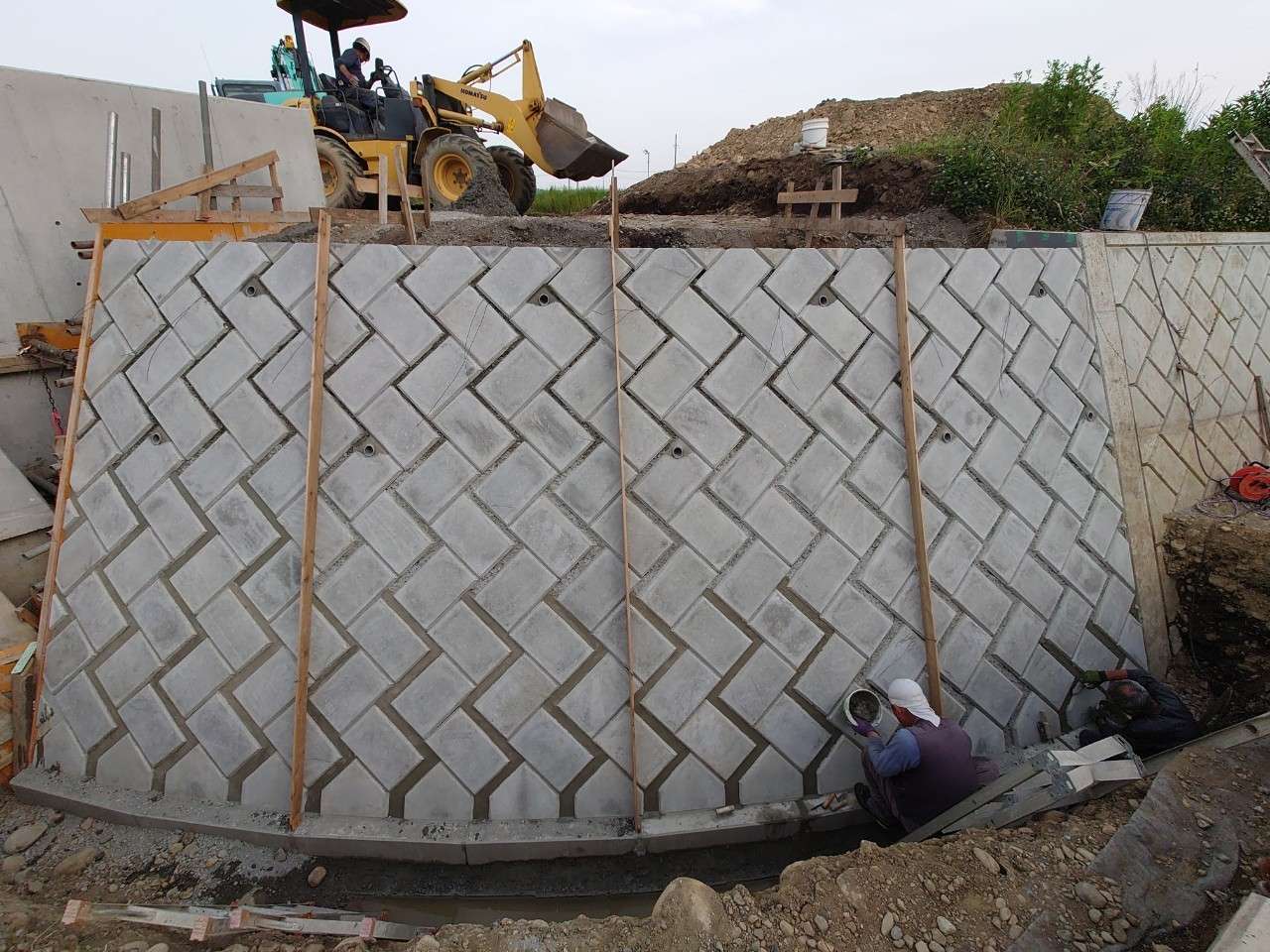 埼玉県所沢市の調節池の工事で大型張ブロックを施工した現場です。 1割の張りで施工しました。 ここの調節池では全部で4工区施工しました。 調…