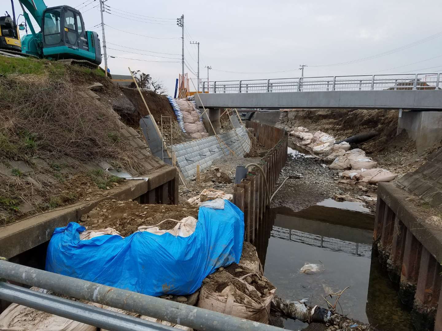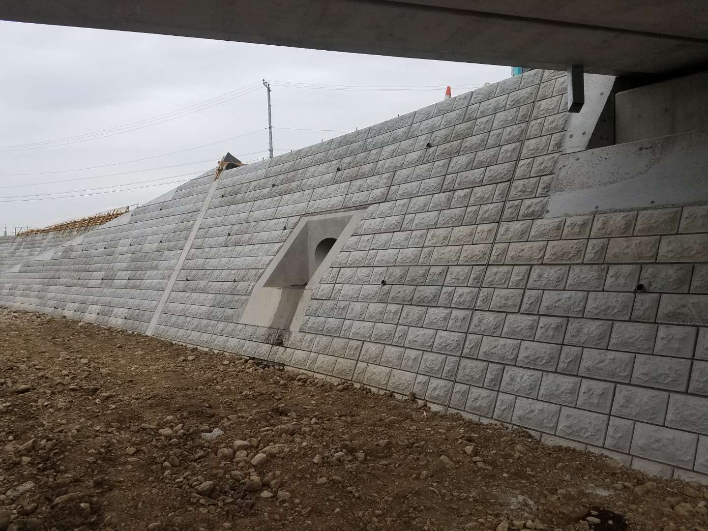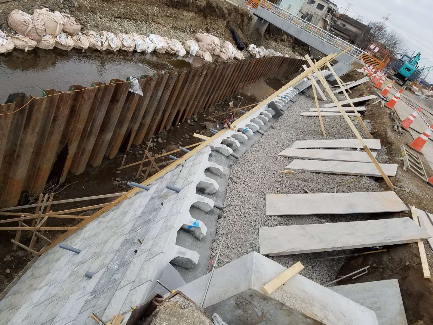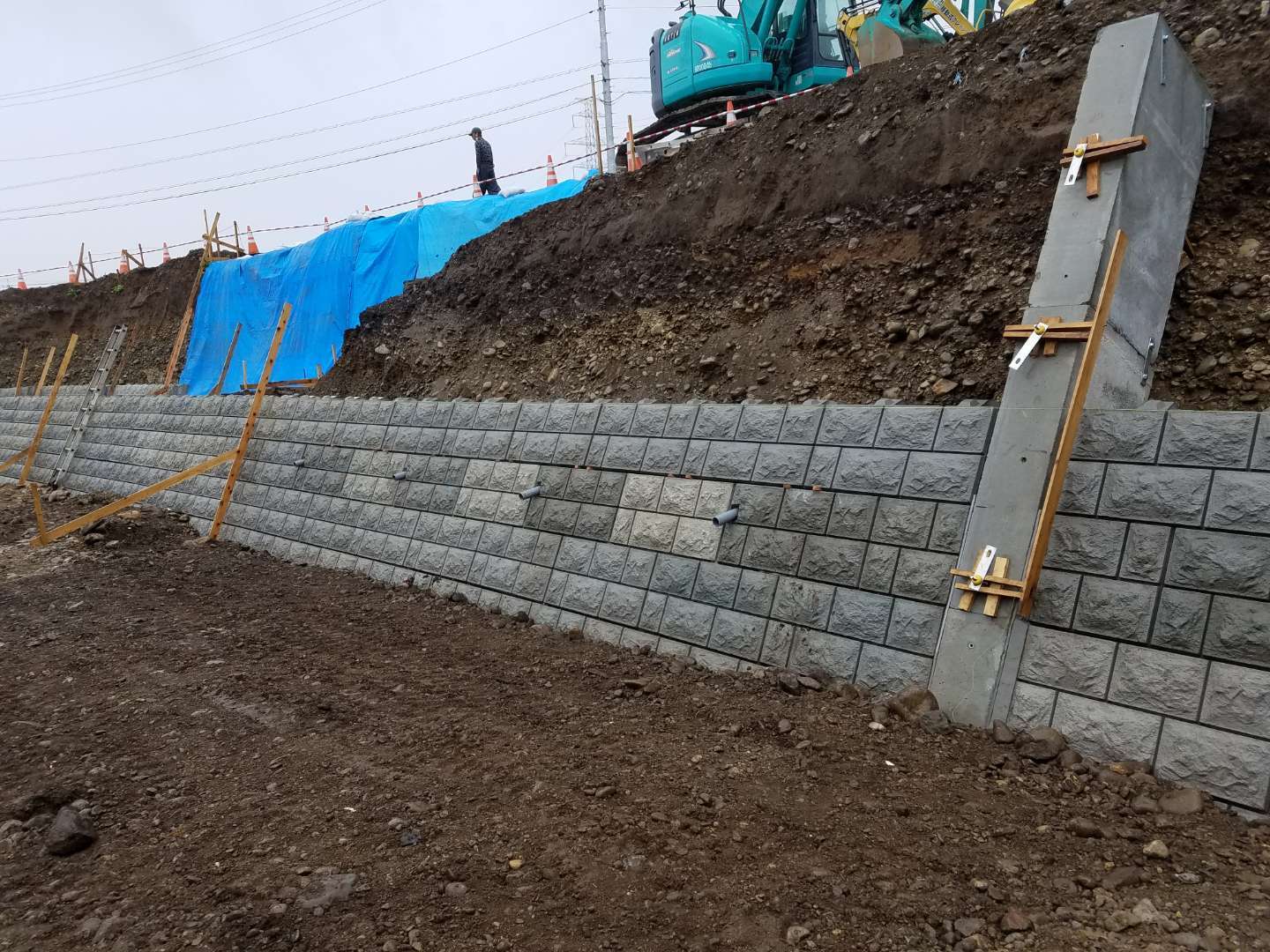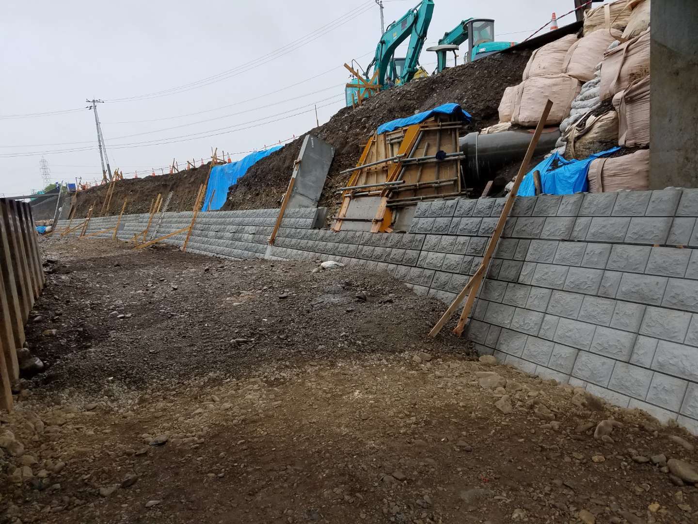 基礎工、大型ブロック積工、小口ブロック敷設工、各所仕上げ工